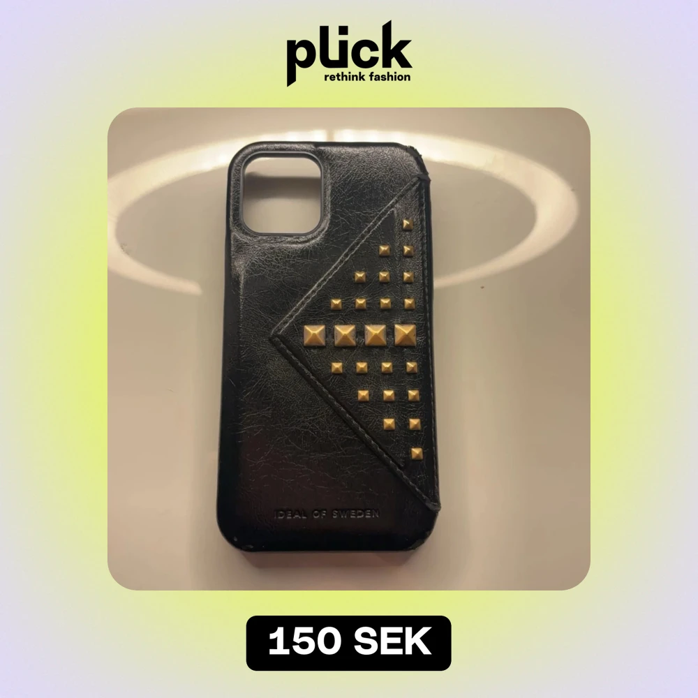 Säljer ett snyggt svart mobilskal från Ideal of Sweden. Det finns ett inbyggt fack i skalet som det får plats kort i! Det finns några märken och slitage på kanterna, men det är fortfarande i bra skick. Passar en iPhone 12!