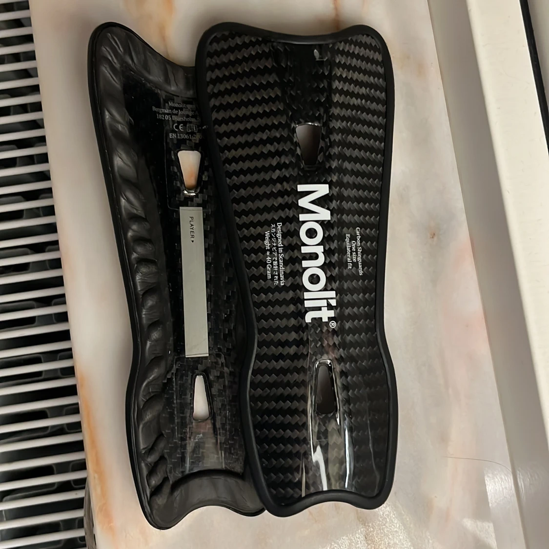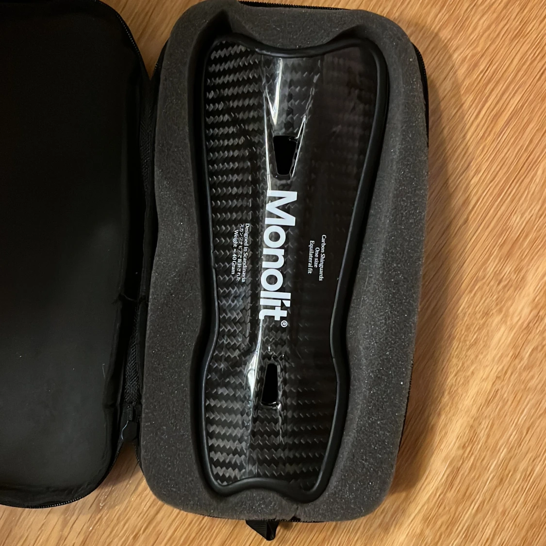 Säljer svarta Monolit benskydd i kolfiber. Perfekt för träning. Kommer i ett praktiskt fodral för enkel förvaring och transport. Nästan aldrig andvända.