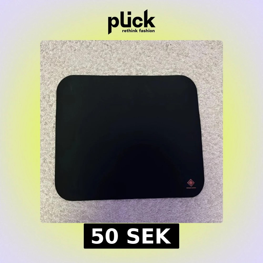 Bilderna visar en svart musmatta från Deltaco Gaming, inte en bok. Ingen information om boktitel, författare eller innehåll kan identifieras från bilderna.