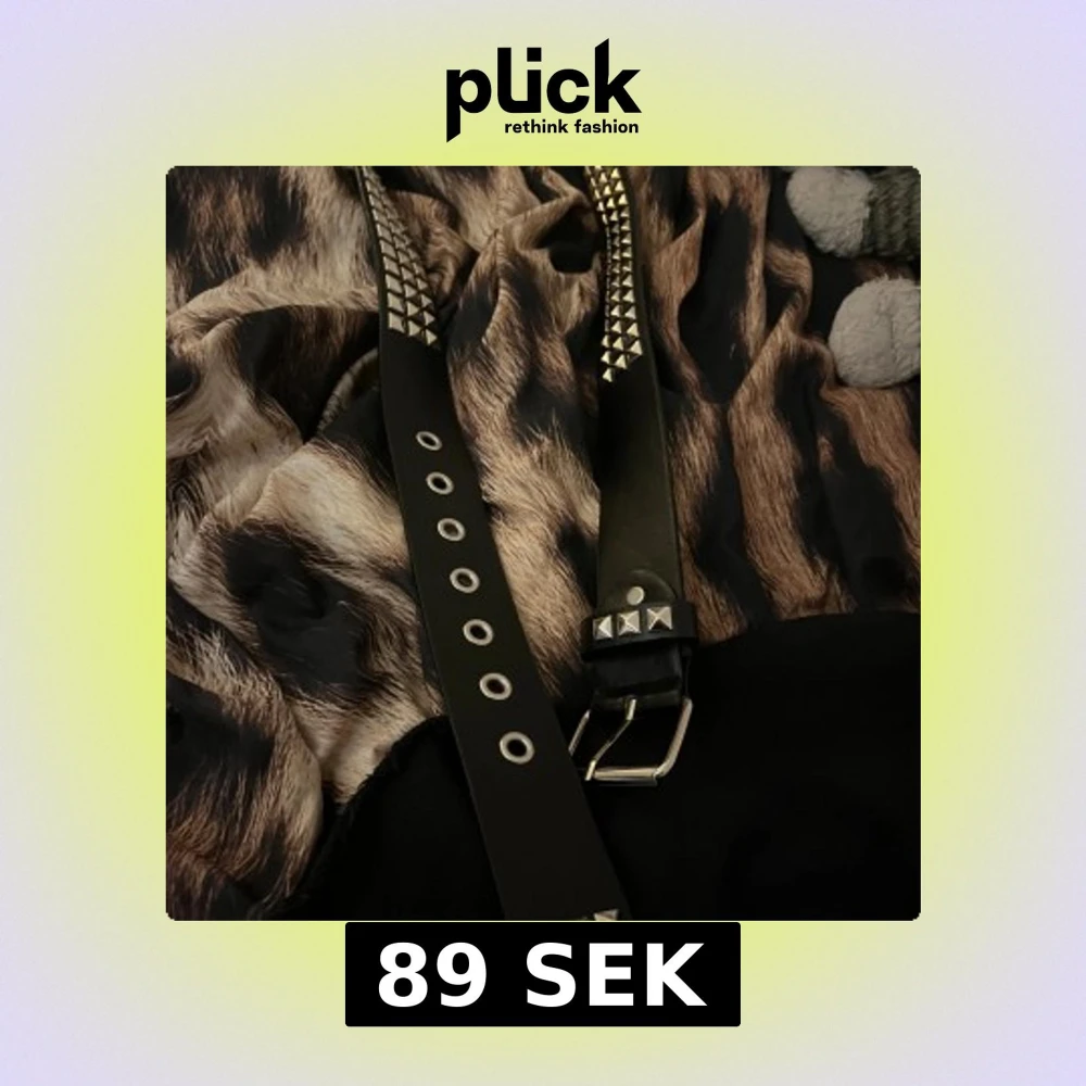 Säljer ett svart bälte med silvriga fyrkantiga nitar och metallspänne. Bältet har flera hål med metallringar. Perfekt accessoar för att ge outfiten en edgy vibe. Aldrig använd