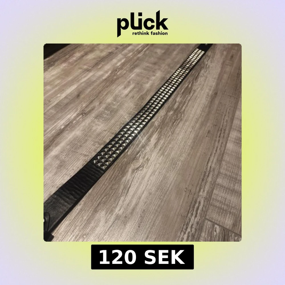 Säljer ett svart bälte i skinn med silvriga fyrkantiga nitar längs hela bandet. Bältet har en klassisk metallspänne och en bredare design som ger en edgy vibe. Perfekt accessoar för att lyfta din outfit med lite extra attityd 🥰🥰