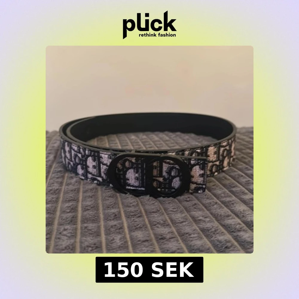 Snyggt bälte med klassiskt monogrammönster i svart och beige. Bältet har en stilren, svart spänne med rundade former och är tillverkat i skinn med textil på ovansidan. Perfekt accessoar för att lyfta din outfit.