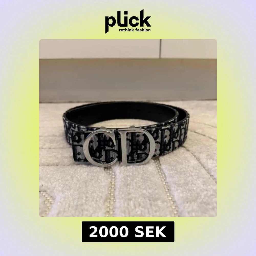 Snyggt bälte från Dior med ikoniskt CD-spänne i silver. Bältet har svart och vit monogramdesign med tydligt Dior-mönster längs hela bandet. Materialet är textil med insida i skinn, perfekt för att lyfta vilken outfit som helst.