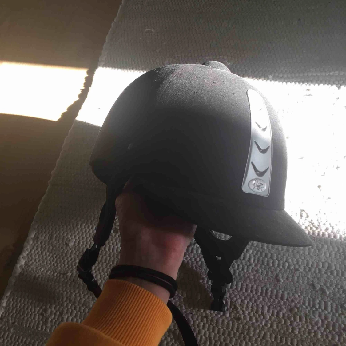 Det är en ny ridhjälm som bara används några gånger. Den är i storlek 54 och är ett bra kvallite. Den kostade 550, nu 250