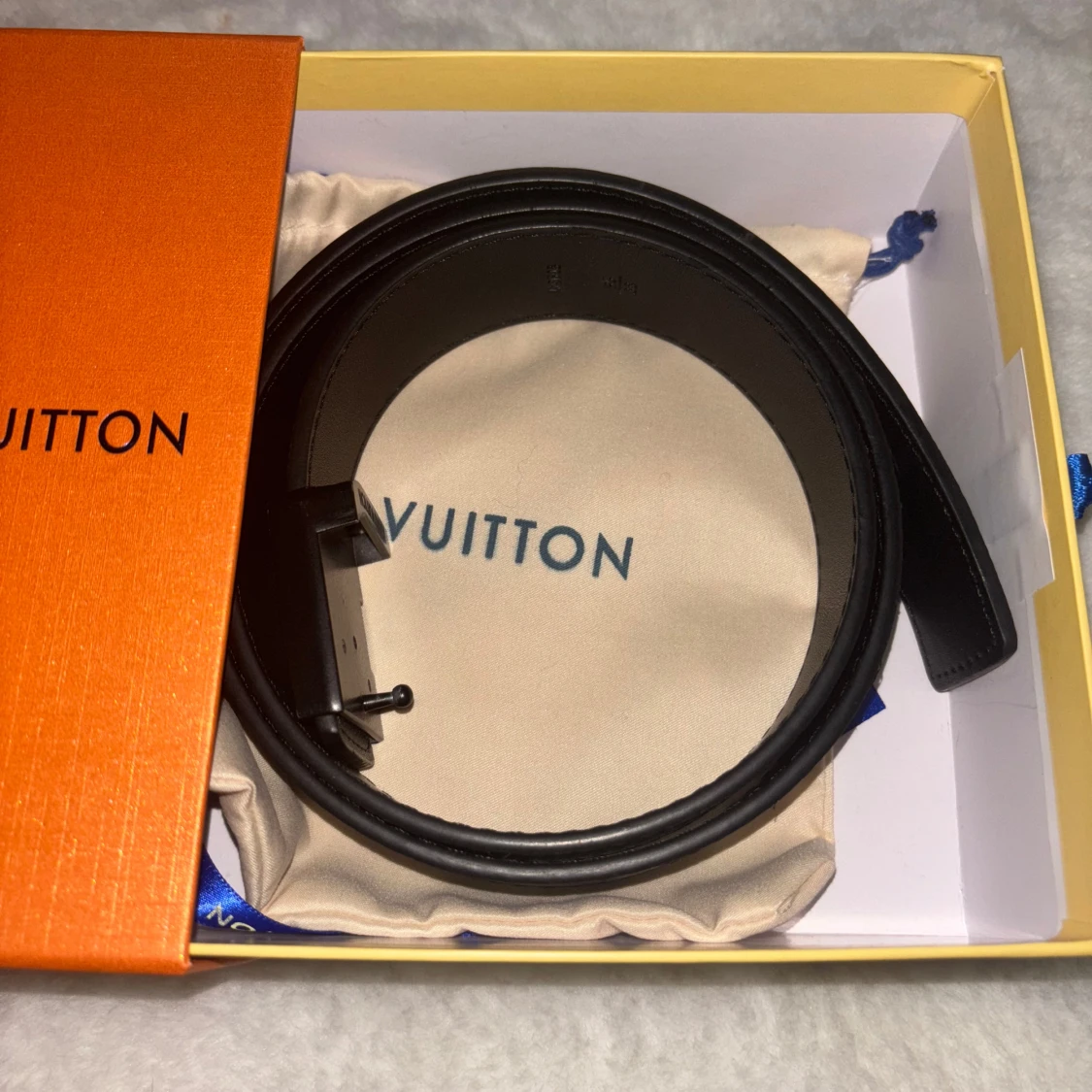 ”Stilrent svart rutigt läder bälte.” ✔️Lite använt men precis som nytt, ✔️Storlek: 100 cm (105 med logga), ✔️Startpris: 349 kr. Bältet kommer också med originalboxen, kvittot, kvittohållaren, påsen, och dustbagen. Kolla min profils beskrivning innan du köper eller kontaktar!
