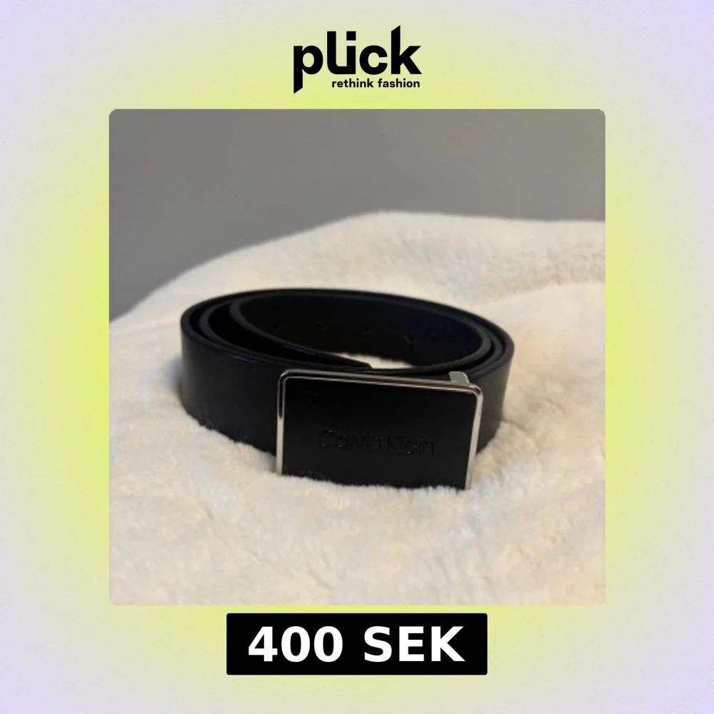 Snyggt svart bälte från Calvin Klein med stilren, rektangulär metallspänne där loggan är ingraverad. Bältet är gjort i slätt skinn och har en klassisk, minimalistisk design som passar till jeans eller kostymbyxor. Perfekt för dig som gillar cleana accessoarer.
