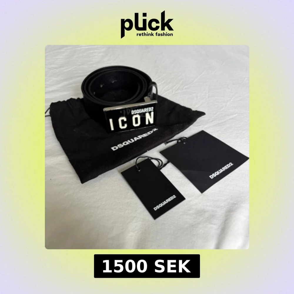 Säljer ett svart bälte från Dsquared2 med ett stort metallspänne där det står 'ICON'. Köpt av mig, så kommer med originalpåse och tags samt kvitto. Nytt kostar det 2899.