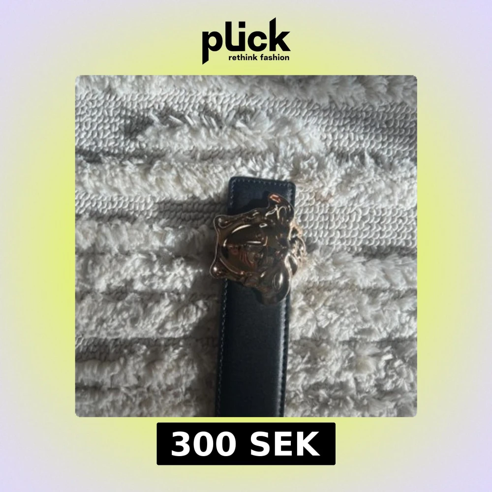 Snyggt svart bälte från Versace med ett unikt, organiskt format spänne i guld. Bältet är smalt och har en stilren design med diskret logga på änden. Perfekt för att lyfta din outfit med en exklusiv touch. 125CM.