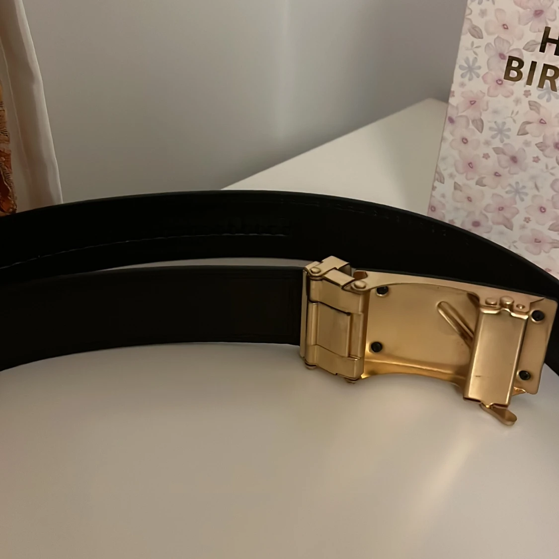 Svart skärp med guldfärgat spänne