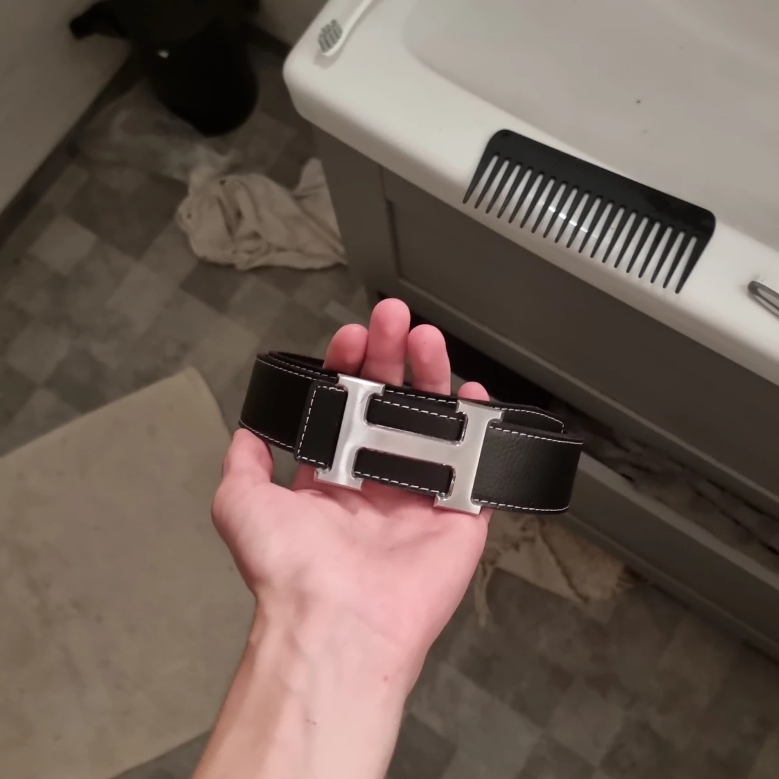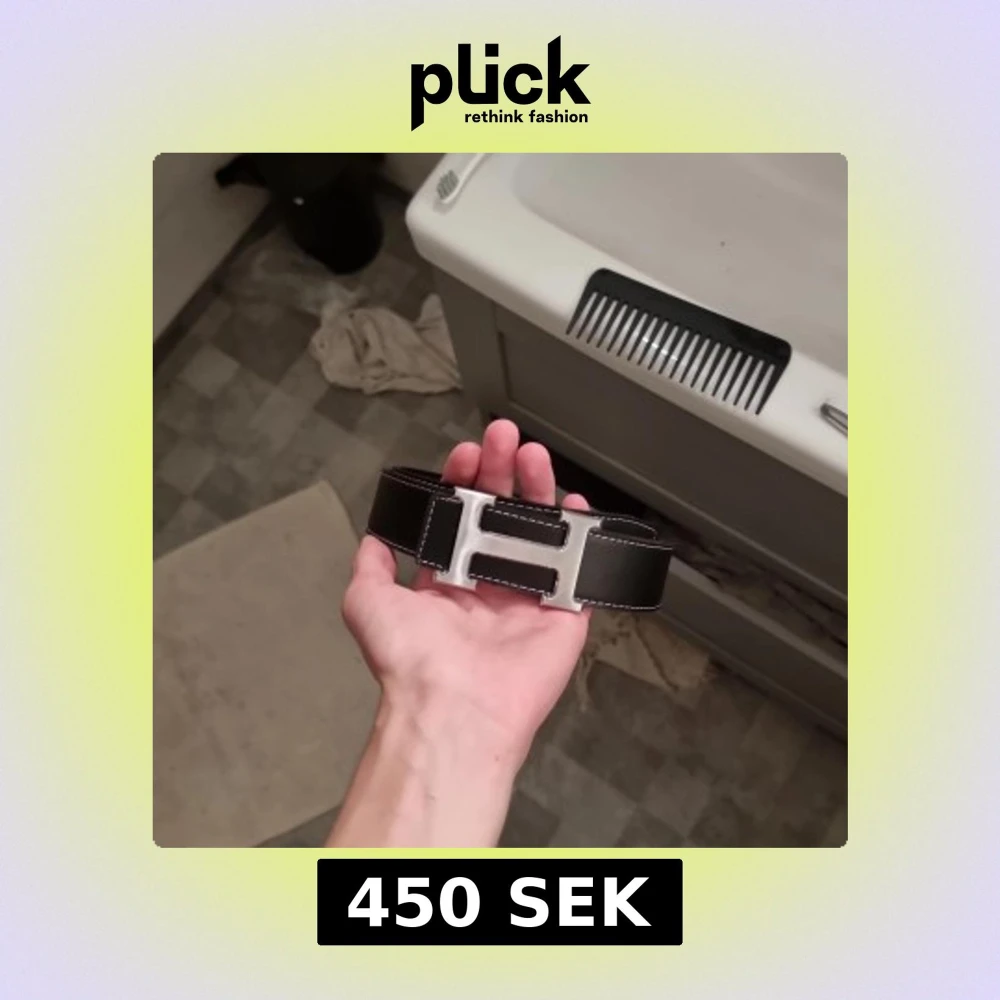 Snyggt svart bälte med ett stort H-format metallspänne och vita kontrastsömmar. Bältet är gjort i skinn och har en stilren, klassisk look som passar till jeans eller kostymbyxor. Perfekt accessoar för att lyfta din outfit.