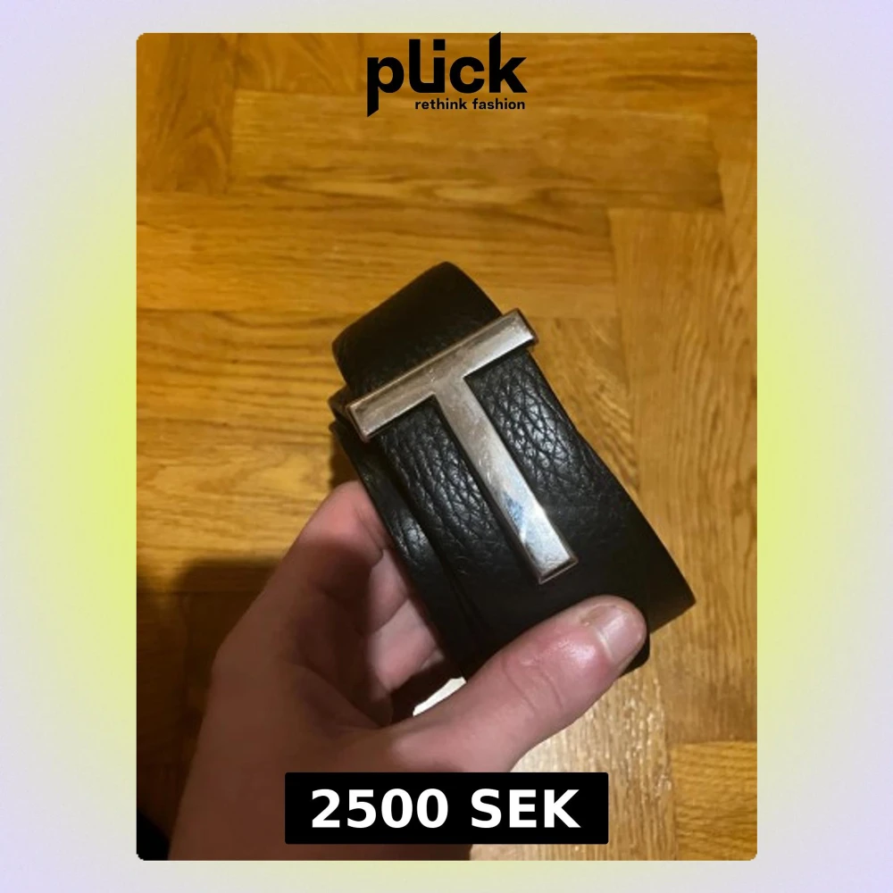 Säljer ett Tom Ford T Icon bälte i svart skinn med en stilren T-formad metallspänne i silver. Bältet har exklusiv känsla och är perfekt för dig som gillar statement-accessoarer. Märket är diskret stämplat på insidan av bältet.