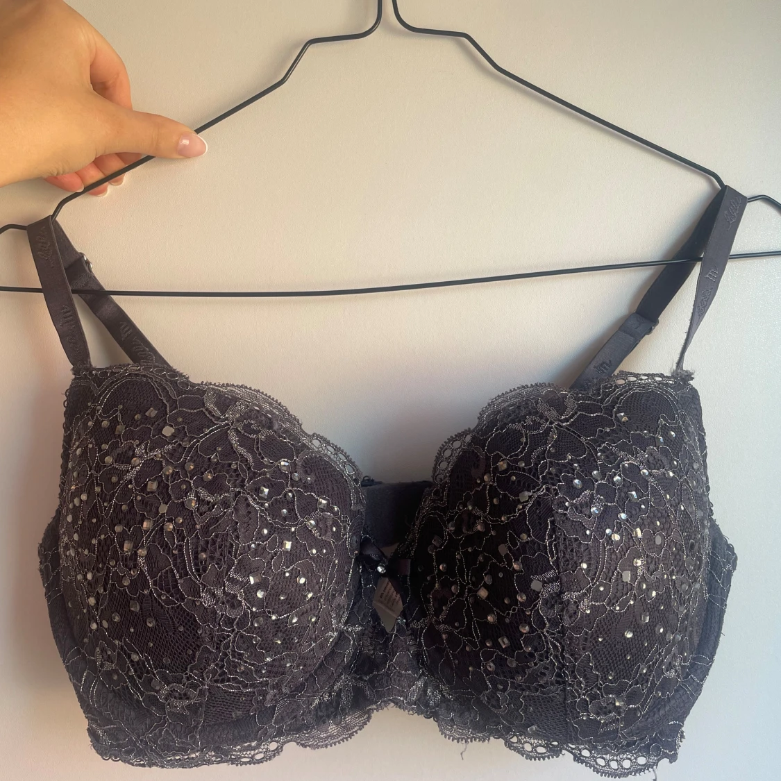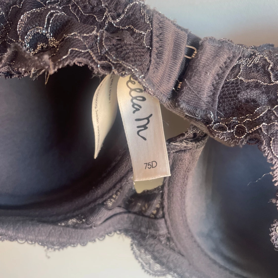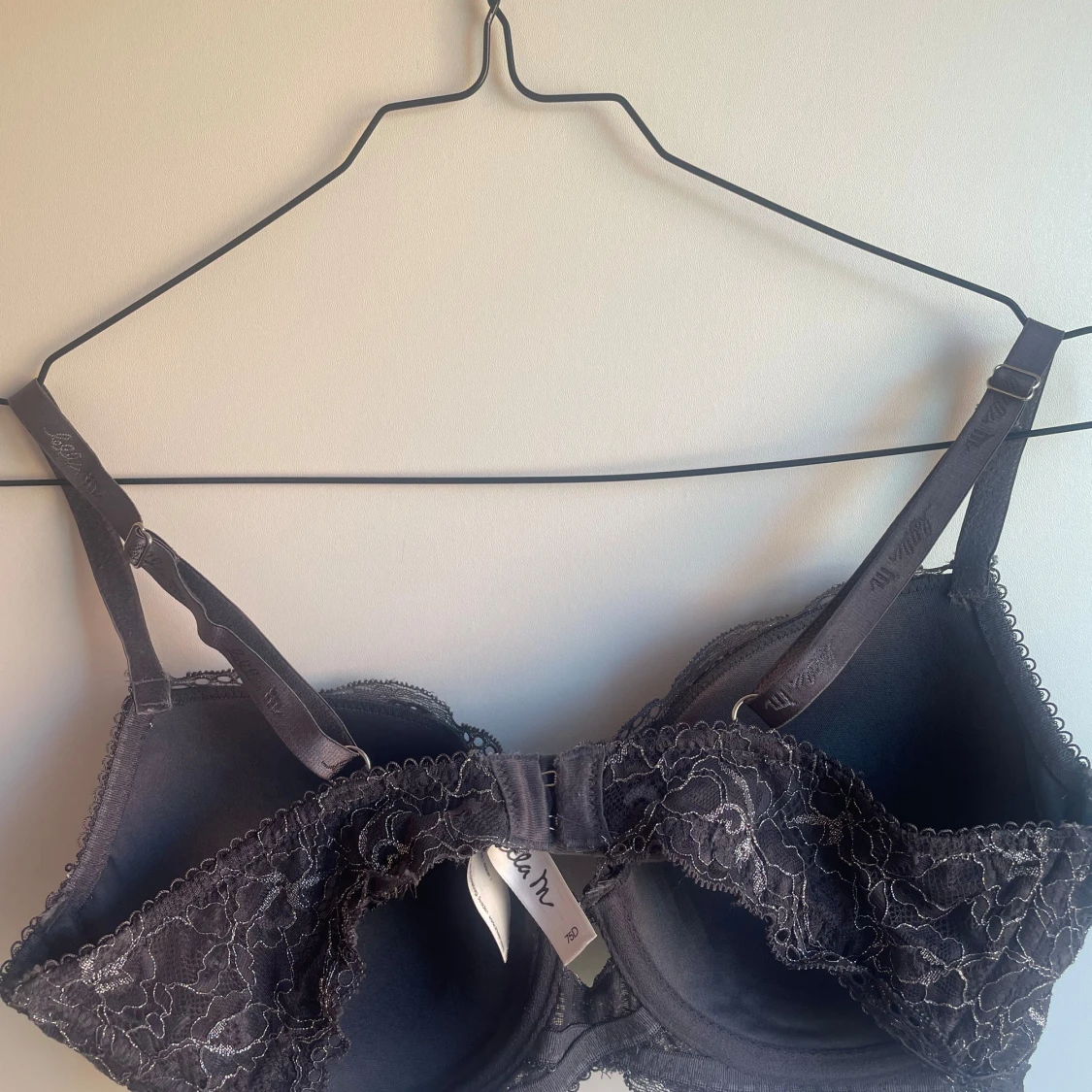 Säljer en elegant svart spets-bh från Stella M i storlek 75D. Bh:n har justerbara axelband och en vacker spetsdesign med en liten rosett i mitten. Perfekt för festliga tillfällen eller när du vill känna dig extra fin. Köp direkt eller ge prisförslag 💛