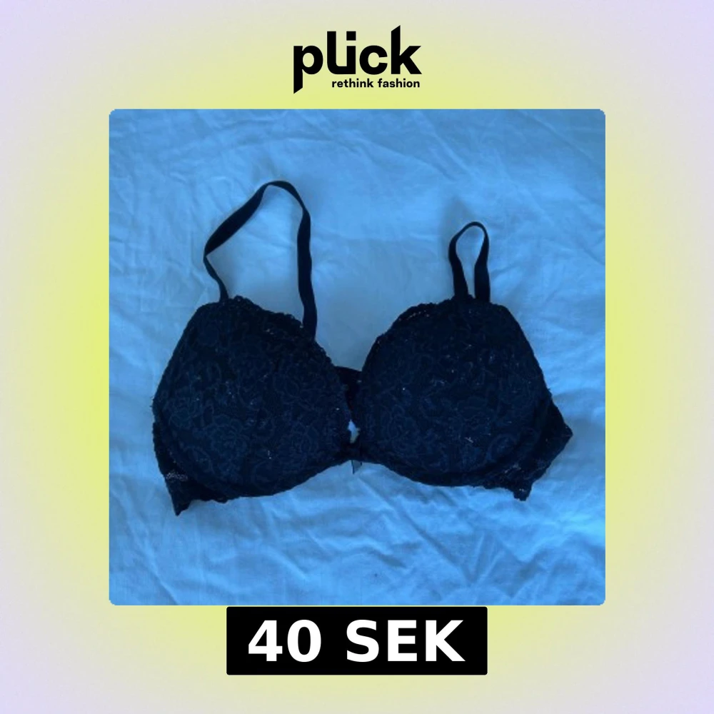 Snygg svart bh med vadderade kupor och justerbara axelband. Bh:n är täckt av blommig spets och har en feminin, elegant look. 75B!
