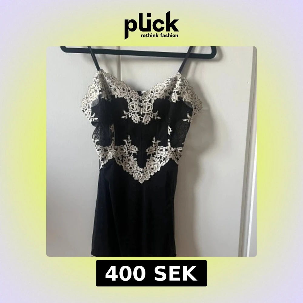 Supersnygg svart spetslinne/klänning från Intimissimi med tunna axelband och vit broderad spets upptill och nedtill.