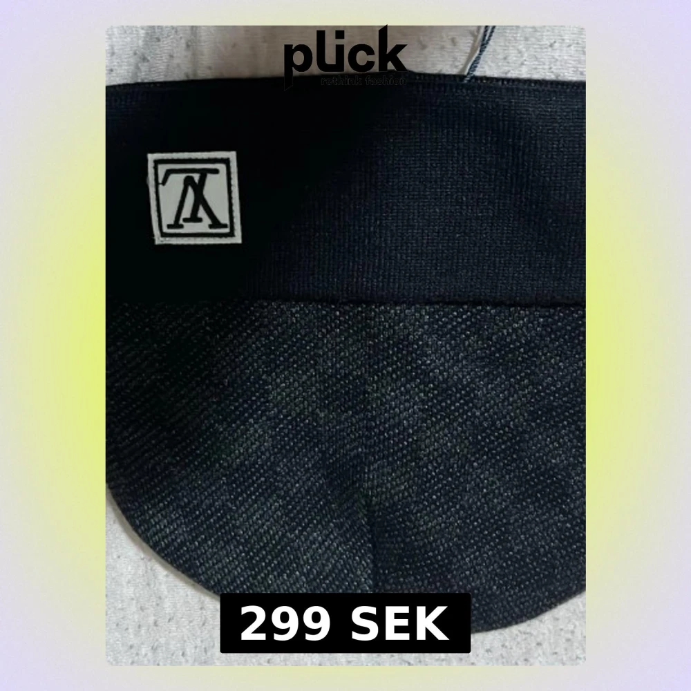 Svart väst från Louis Vuitton med diskret struktur i tyget och klassisk logotyp på etiketten. Västen har en enkel, rundad form och bred kant nedtill. Materialet känns som en blandning av ull och syntet, vilket ger en lyxig och modern känsla.