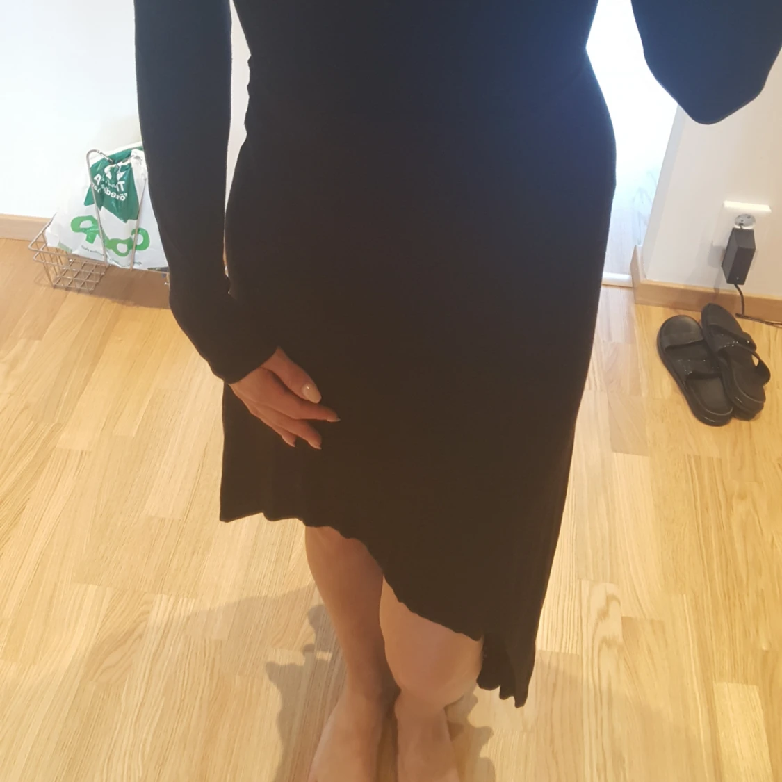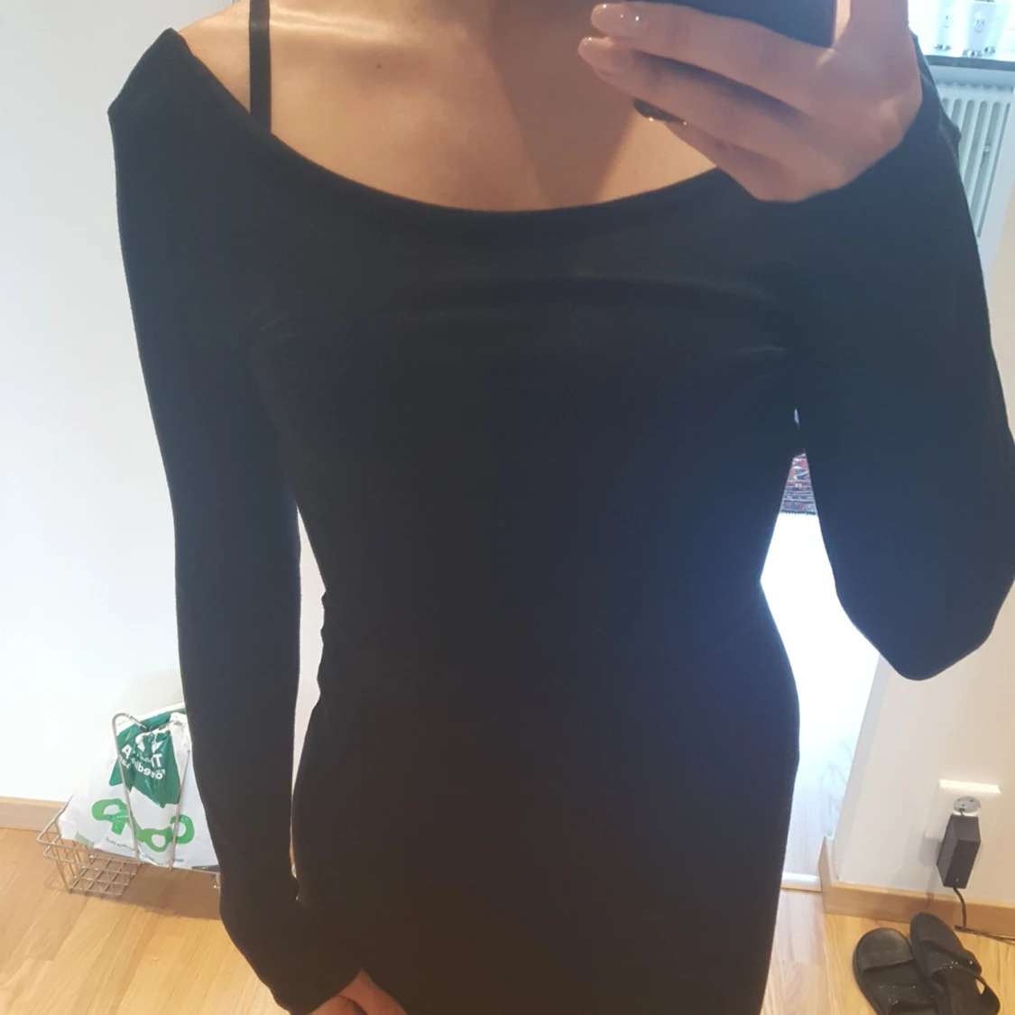 Svart klänning med öppen rygg. Kortare framtill och längre bak. Använd 1 tillfälle. Storlek s Finns i Helsingborg men kan skickas mot fraktkostnad