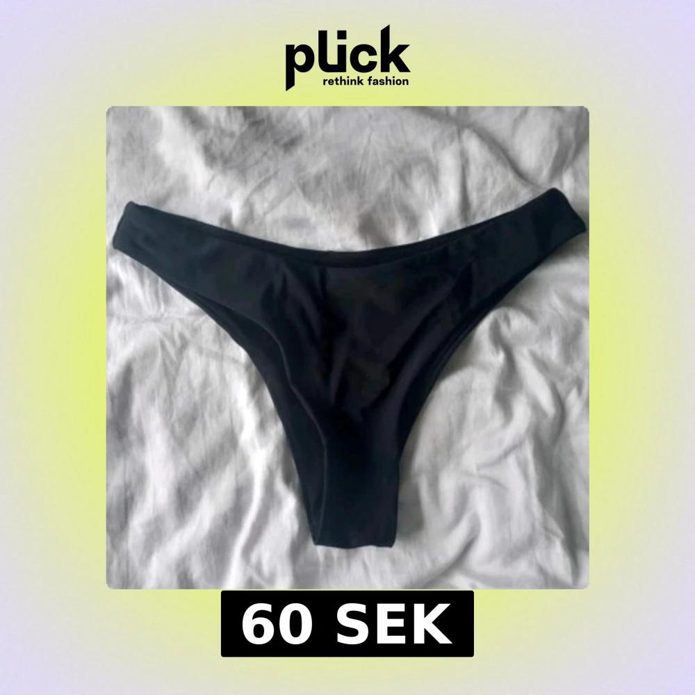 Snygg svart bikiniunderdel med enkel design. Modellen har högt skurna ben och en tight passform som framhäver siluetten. Perfekt för strandhäng eller poolparty. Materialet känns mjukt och följsamt mot huden. Passar även S!