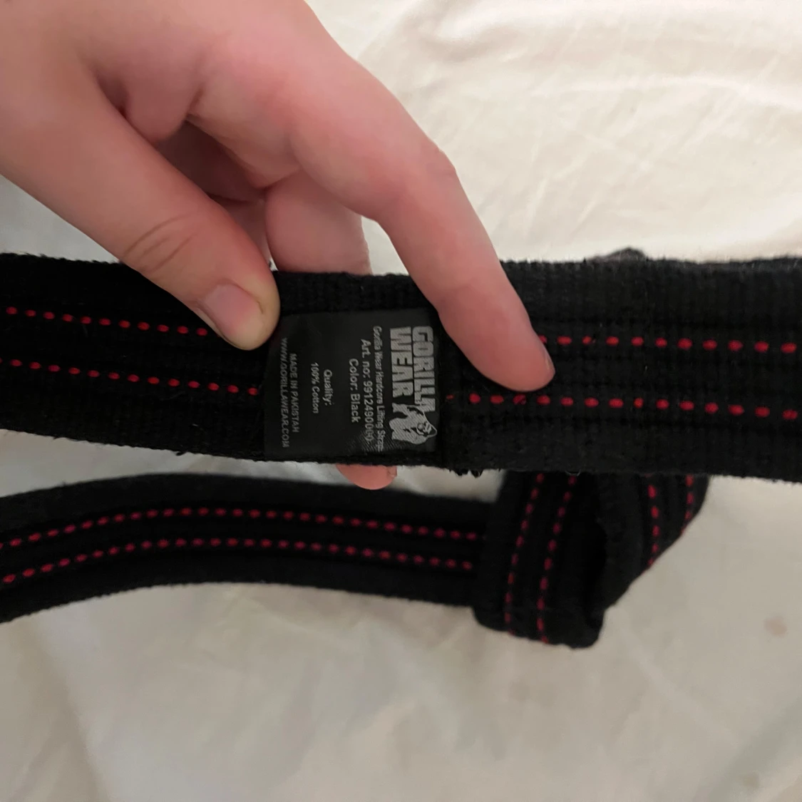 Säljer 3 svarta straps från Gorilla Wear med röda sömmar. Dom har broderad logga och är gjort för styrketräning. Perfekt för gymmet när du vill ha extra stöd vid tunga lyft.