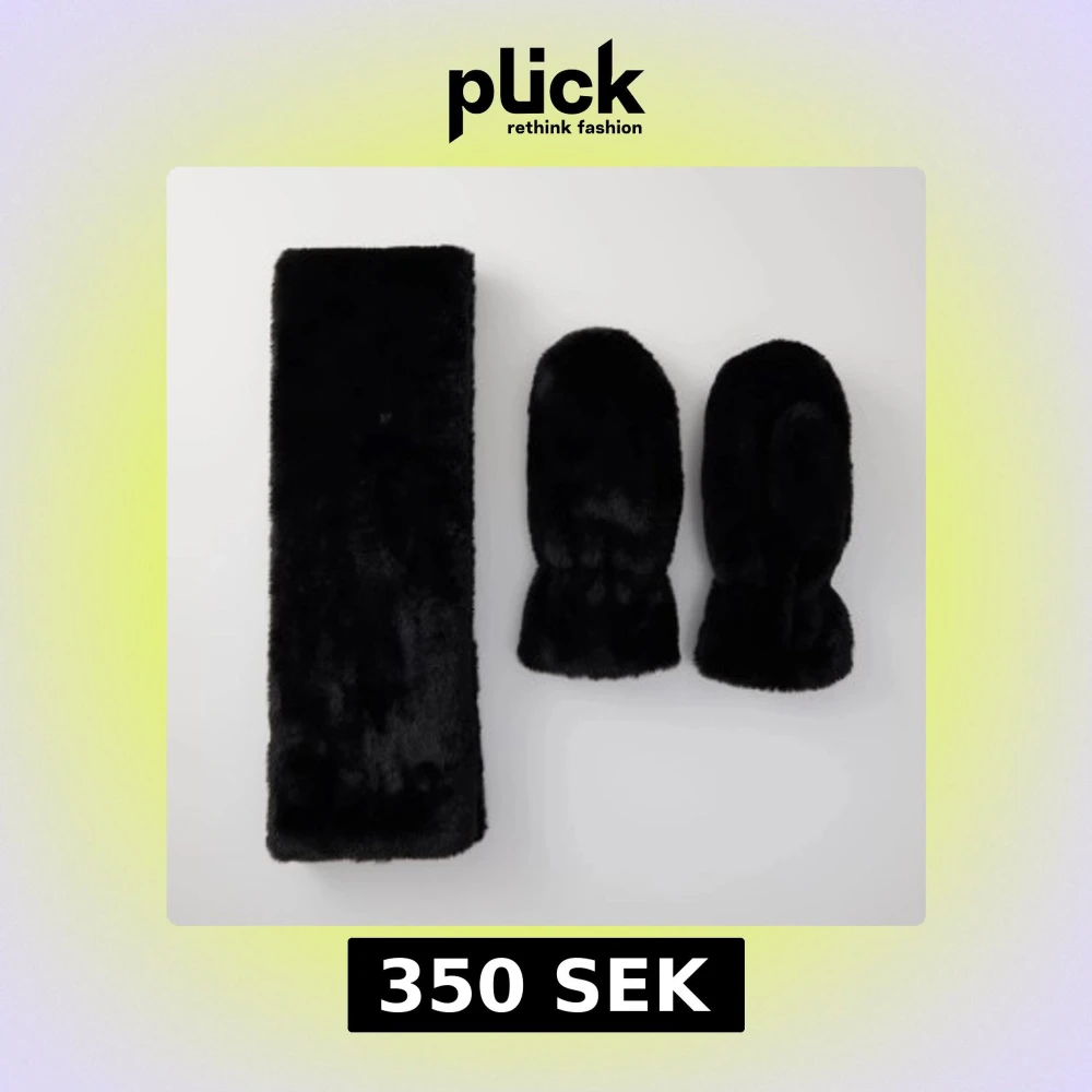 Svarta pälsvantar + halsduk