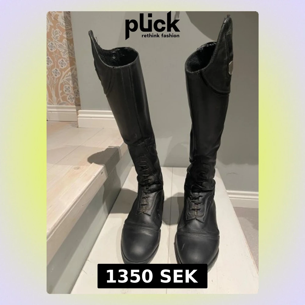 Säljer ett par svarta ridstövlar från mountain horse i storlek 36/37. Stövlarna är höga med snörning framtill, dragkedja baktill och snygga metallknappa. Har en liten reva som syns på bilden men är sparsamt använda