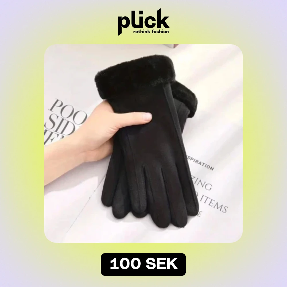 Säljer ett par eleganta svarta Vinterhandskar med mjuk pälsdetalj vid handleden. Perfekta för vintern och håller dig varm och stilren. De är i nyskick och passar bra för både vardag och fest. Märket är diskret markerat på handleden.