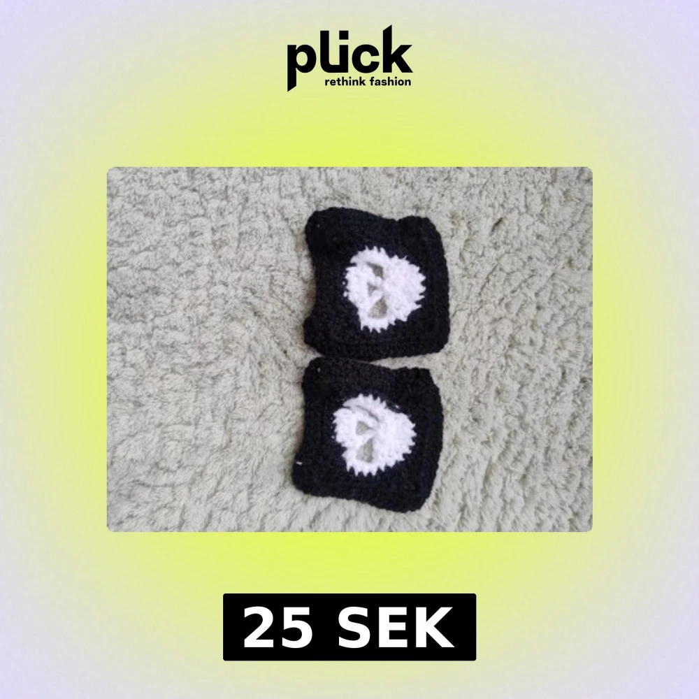 Säljer ett set med två små handgjorda virkade glasunderlägg. Underläggen är svarta med en vit döskalle i mitten. Handgjorda av mig!