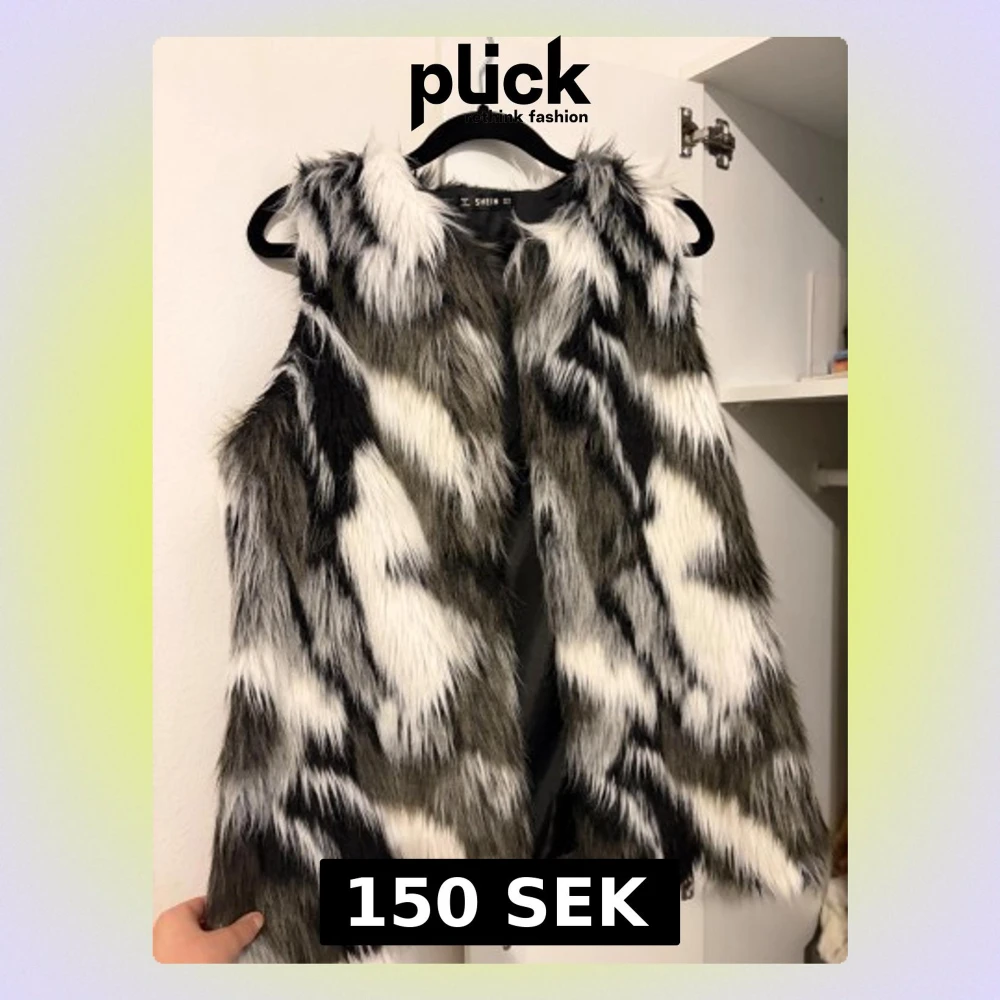 Säljer en fluffig och cool pälsväst från SHEIN i storlek S. Västen har ett mönster som påminner om zebra. Aldrig använd då den är förstor