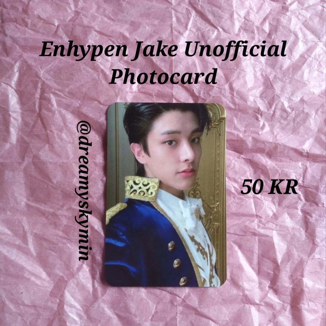 Unofficial Photocard på Jake från Enhypen. Gratis frakt och freebies ingår i köpet. Kostar bara 50 KR. Kontakta mig om du är sugen på att köpa.