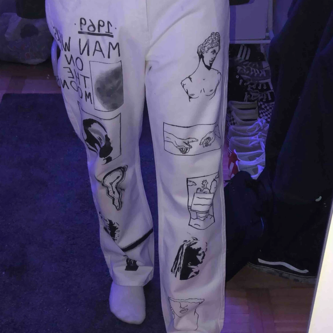 säljer inte just dessa byxor, men säljer plagg med liknande tryck beroende på vad köparen vill ha :) så det är bara att önska så gör jag. pris är 150 kr + plaggets pris. kan mötas i sthlm annars står köparen för frakt. hör gärna av er för bättre bild :)