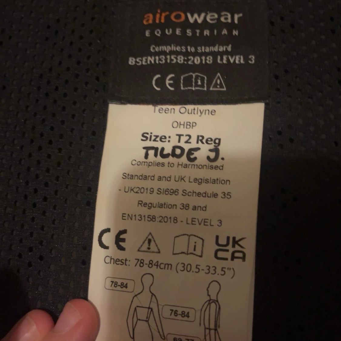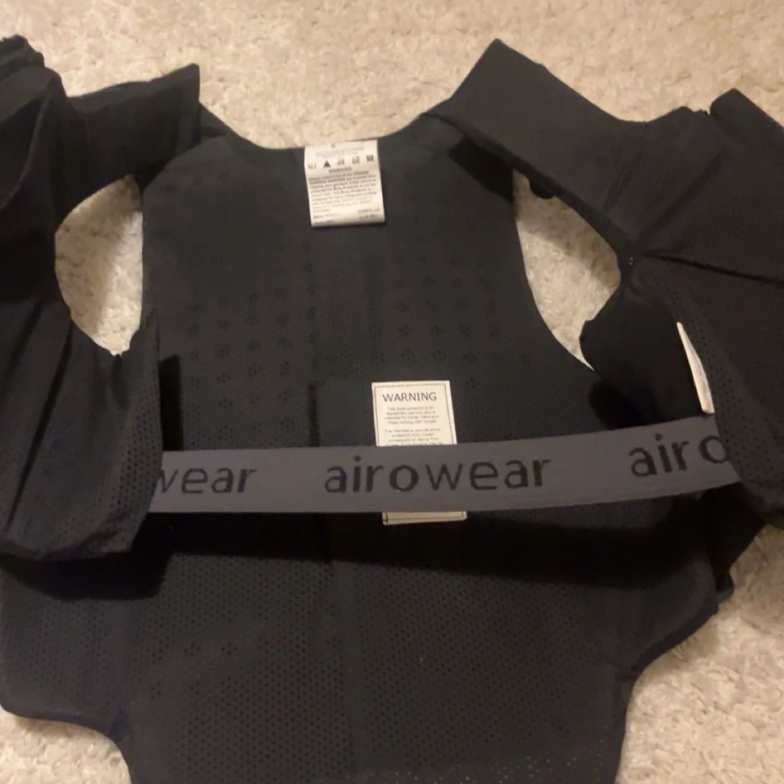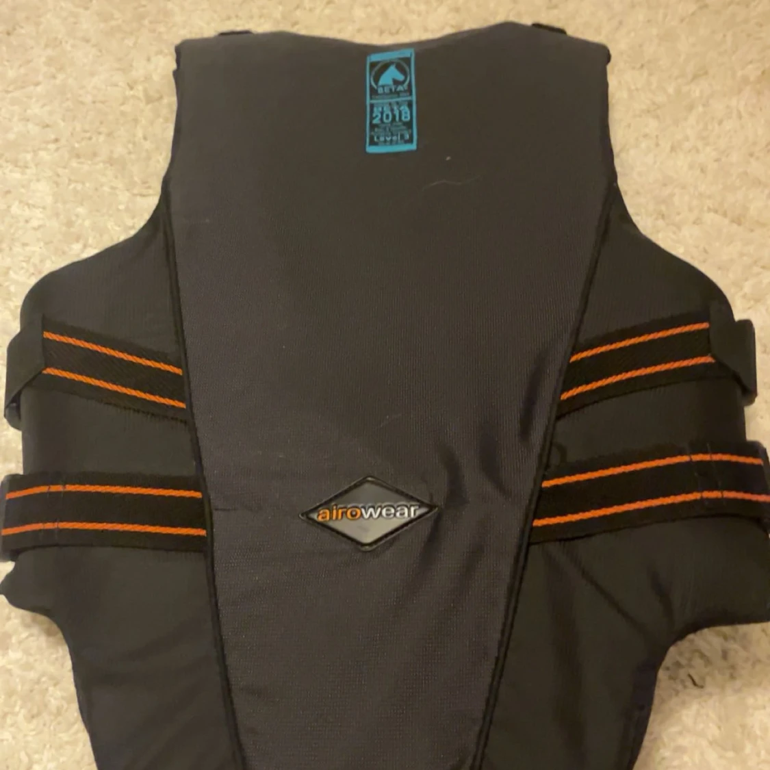 Säljer en svart säkerhetsväst från Airowear, modell Teen Outlyne. Västen har justerbara kardborreband på sidorna och axlarna samt orange detaljer. Perfekt för ridning och ger bra skydd. Materialet är syntet och västen är designad för att sitta bekvämt och säkert.