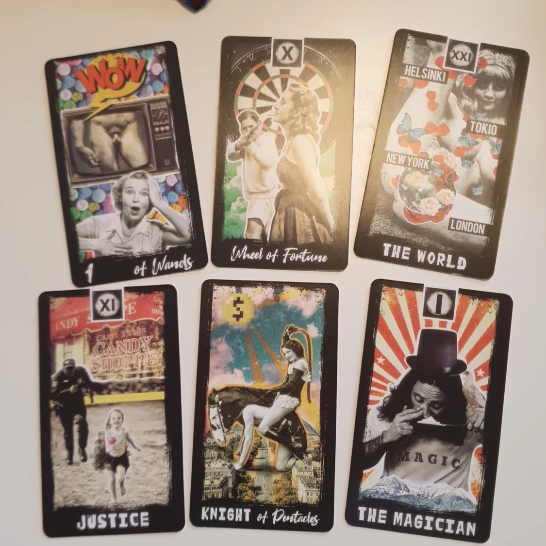 Rolig tarotlek, inte för den lättkränkta. Endast tittat på korten så nyskick. Pris 130kr