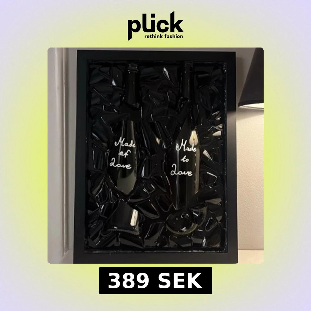Denna tavla Ă€r en stor svart tavla med en krossad glasflaska i centrum! Perfekt för dig som vill ha en unik och stilren touch i hemmet!đDenna tavla har citatet âMade of Love, Made to Loveâ! InnehĂ„ller: Svart ram, Ă„tervunnen glasflaska och högkvalitativt epoxylim. Tavlan Ă€r brĂ€nd pĂ„ de största glasbitarna för att minska vassheten.