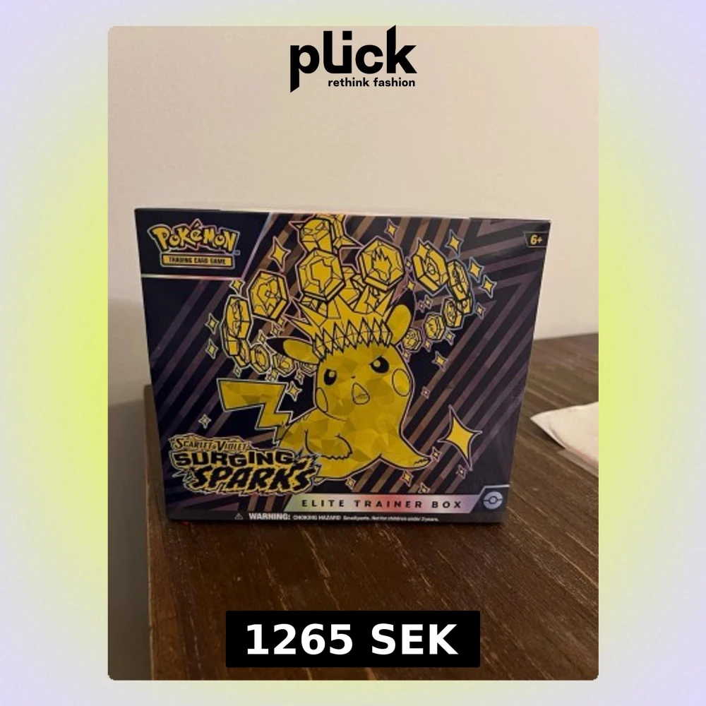 Säljer en helt ny och oöppnad ETB (Elite Trainer Box) från Scarlet & Violet – Surging Sparks. Innehåll: 9 boosterpack från Surging Sparks 1 exklusivt foil-promokort (Magneton) 65 kortskydd med Pikachu-design 45 energikort Spelarhandbok för setet 6 skademarkeringstärningar 1 tävlingsgodkänd tärning för coin flips 2 plastmarkörer för specialtillstånd Samlarbox med 4 avdelare Kodkort till Pokémon TCG Live Boxen är fabriksförseglad och i perfekt skick.
