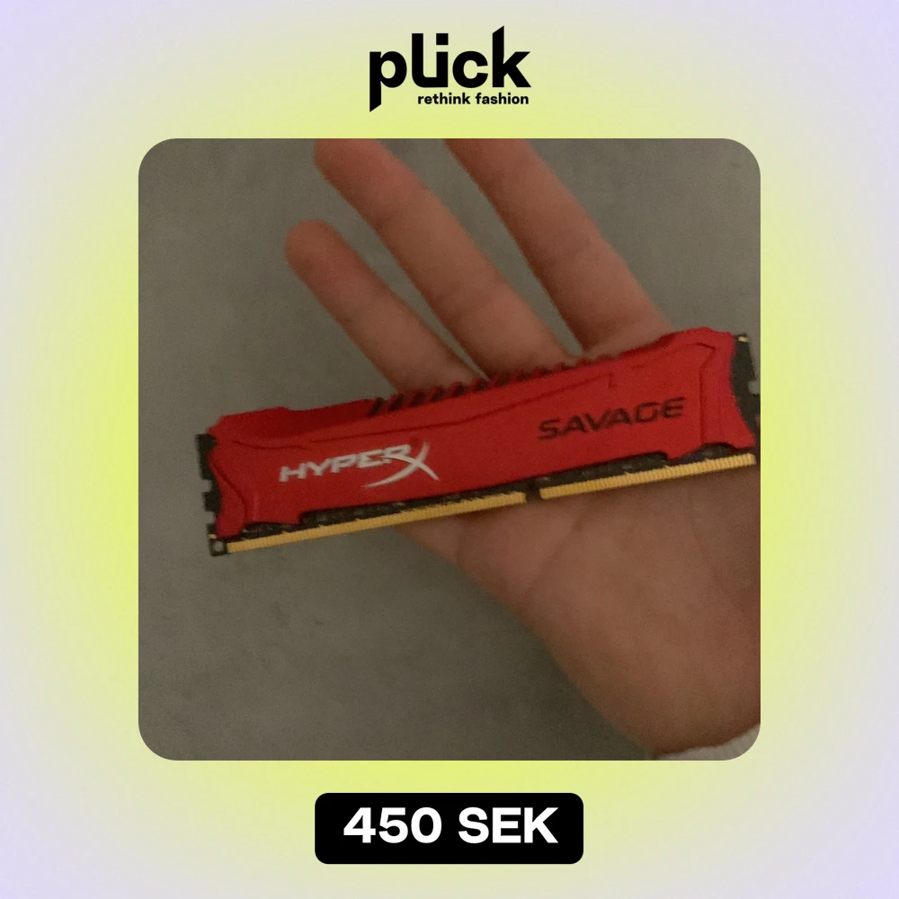 Säljer tre stycken HyperX Savage RAM-minnen. De är röda med en snygg design och har texten 'SAVAGE' tryckt på sidan. Perfekt för att uppgradera din dator och få bättre prestanda. De är i bra skick och redo att användas. Passa på att ge din dator en boost! (1st 250kr)