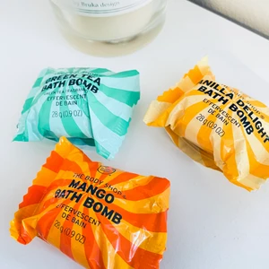 Paketet innehåller 3st badbomber från The body Shop. De olika sorter är Green tea, Mango och Vanilla delight. Går ej att köpa på hemsidan. 28g