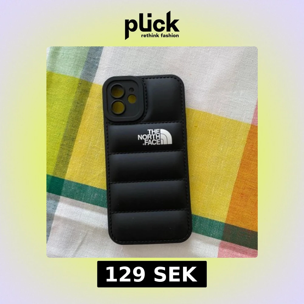 Säljer ett svart mobilskal från The North Face med vadderad design och logga på baksidan. Skalet har en quiltad look och passar perfekt för dig som vill ha en snygg och sportig accessoar till mobilen. Passar IPhone 12. Ej äkta