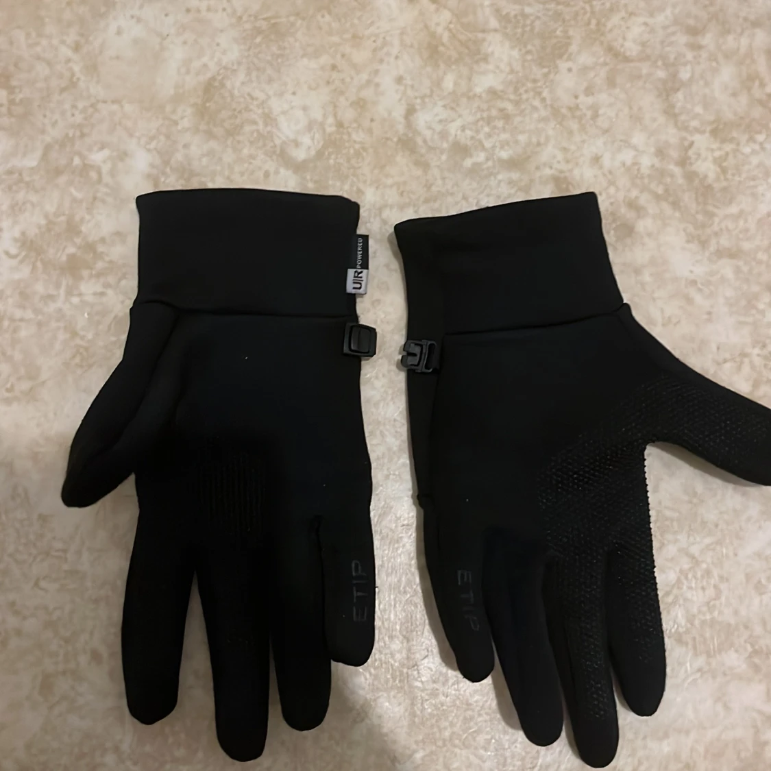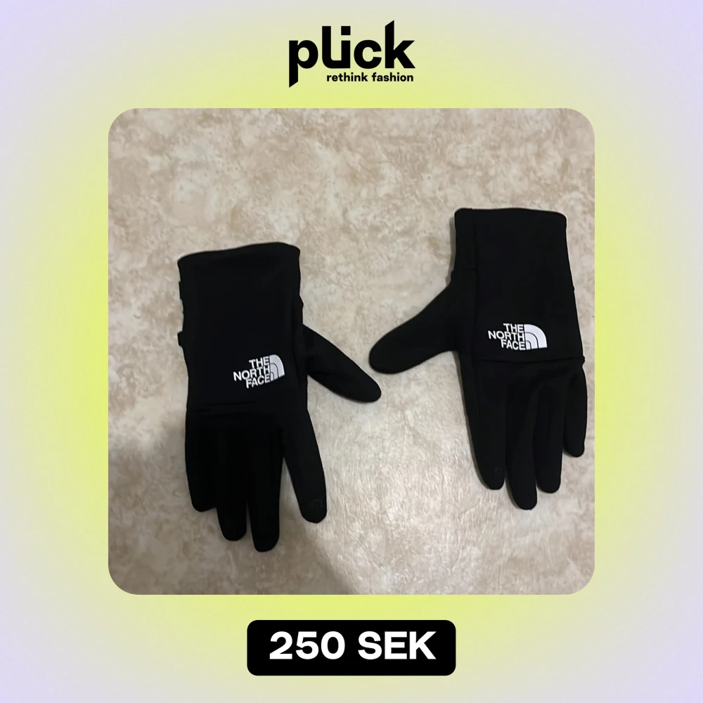 Säljer ett par svarta handskar från The North Face i nytt skick. De är perfekta för höst och vinter, med en stilren design och logga på ovansidan. Handskarna har E-tip funktion för att använda mobilen utan att ta av dem. Perfekta för både vardag och utomhusaktiviteter!