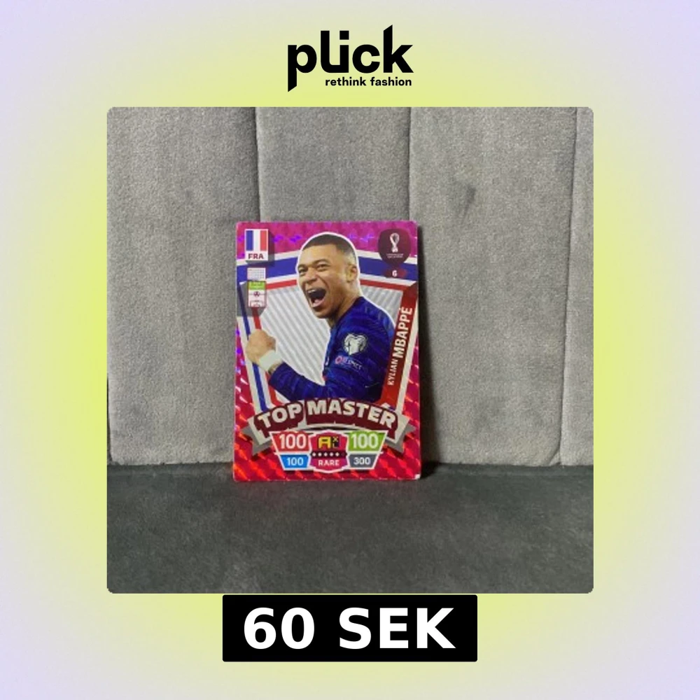 Samlarkort med Kylian Mbappé från FIFA World Cup Qatar 2022. Top Master, rare-kort med maxade stats – perfekt för dig som älskar fotboll och vill boosta din samling med en av världens bästa forwards!