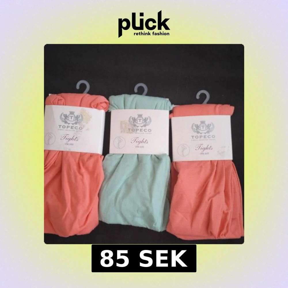 Tre par Topeco tights i one size, två i korallrosa och ett i mintgrönt. Tightsen är tunna, 60 denier, och tillverkade i 90% polyamid och 10% elastan för en mjuk och stretchig känsla. Perfekta för att addera färg till din outfit.