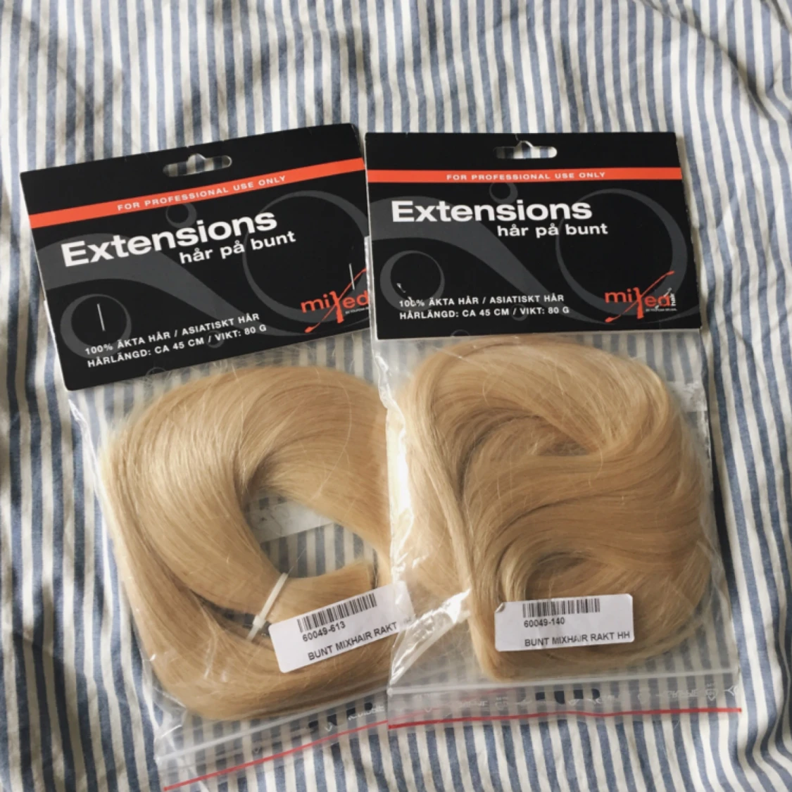 Helt nytt hår i oöppnad förpackning, köpte för 800 kronor men blev aldrig använt. 45 cm långt och väger 80 g per påse. Priset är exklusive frakt 🌹