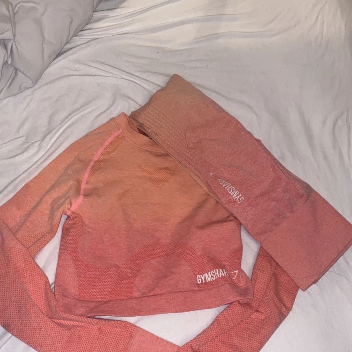 Säljer gymshark tränings sett i modellen seamless ombre coral, slutsålda på hemsidan och i storlek S använda några gånger men i gott skick, säljer byxorna för 220kr och toppen för 150kr, köper man båda säljer jag det för 300kr