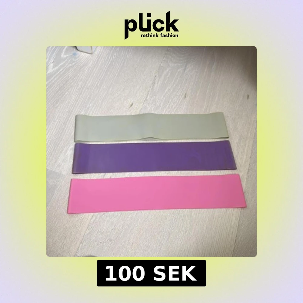 3 st motståndsrep/ elastiska träningsband som funkar perfekt till träningen, både i gymmet och hemifrån! Har aldrig blivit använda men har blivit lite missfärgade. De tre är olika stretchiga