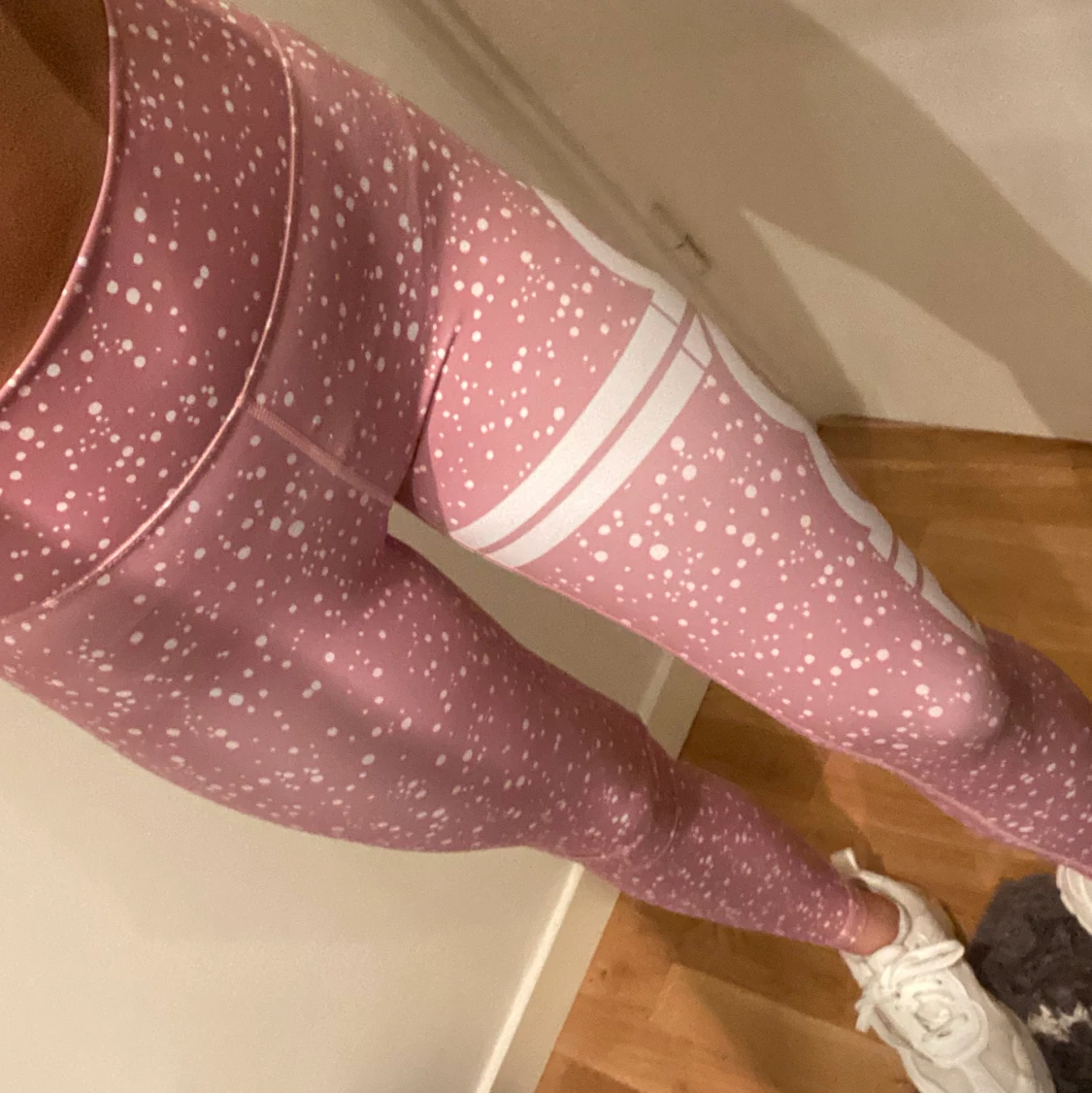 Fina träningstights i rosa med prickar. Märket AIMN står över vänsterbenets sida. Knappt använda. Storlek XS, normal i storleken.