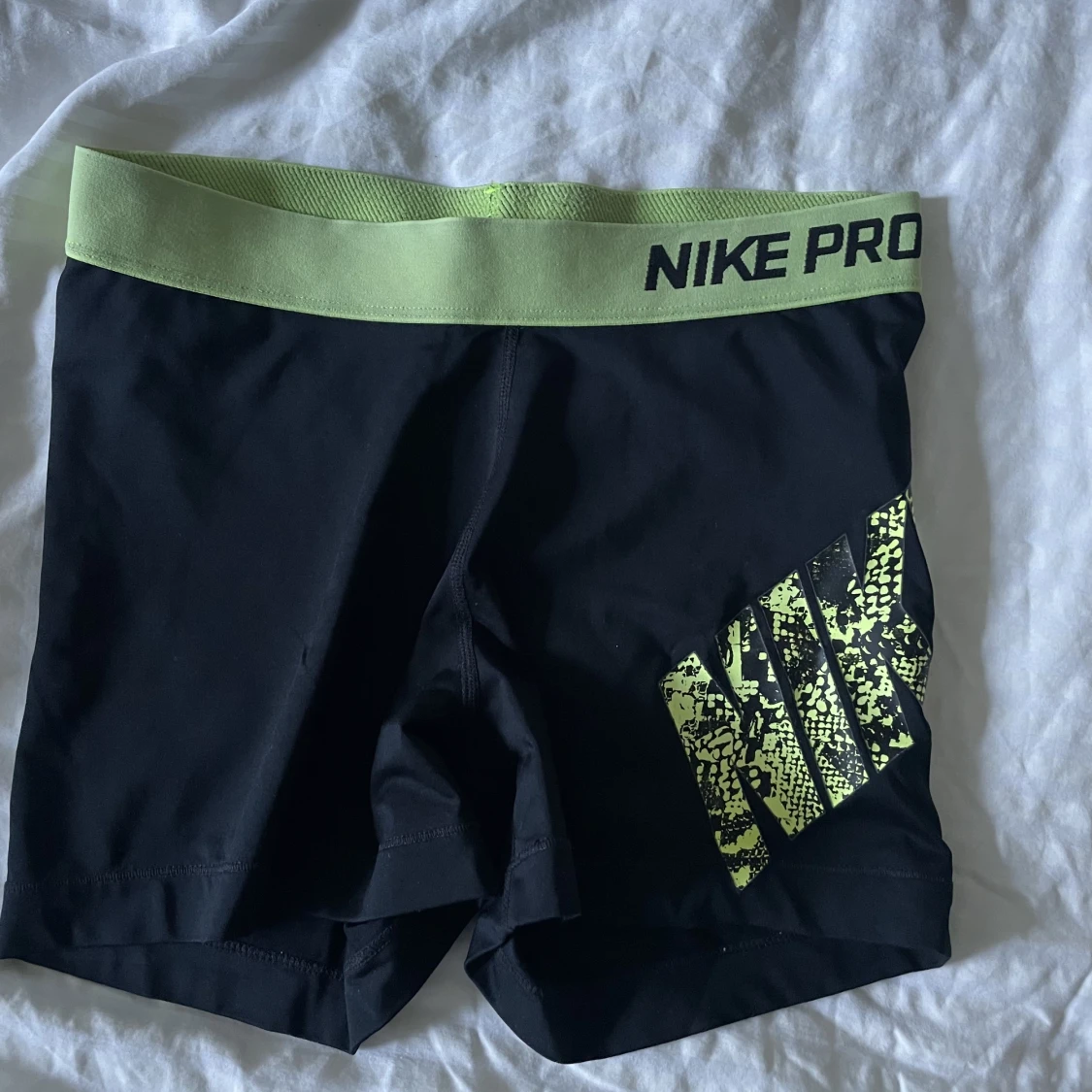 Svarta Nike pro shorts med gröna detaljer! Storlek M💚 100kr+frakt