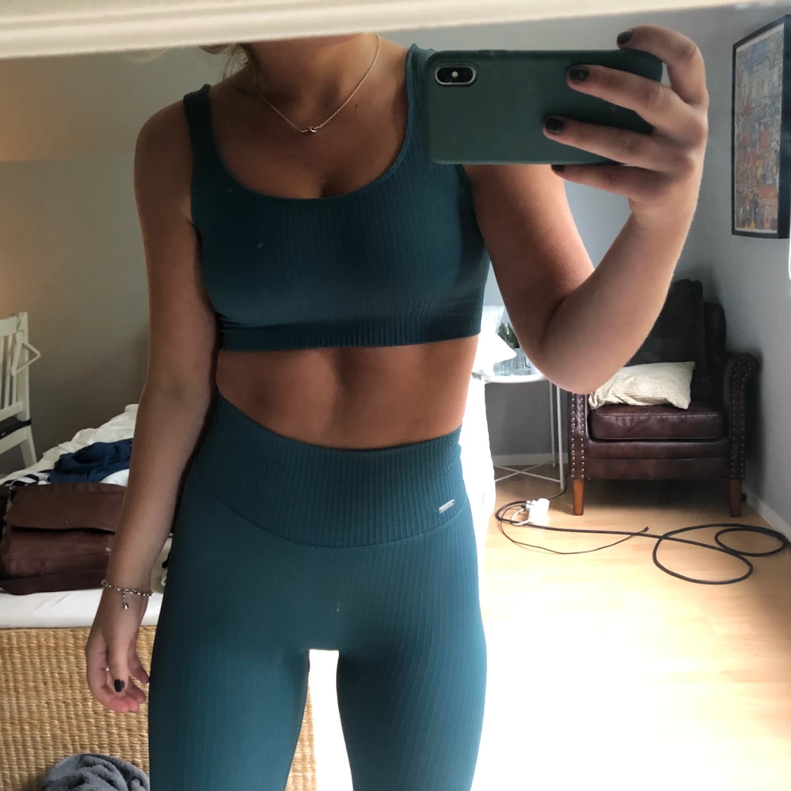 Säljer mitt nyköpta Aim’n set i en fin turkos/blå färg. Aldrig aldrig använt vid träning utan endast testat! Strl XS🥰 300 för tightsen och 200 för toppen eller 400 för båda❤️