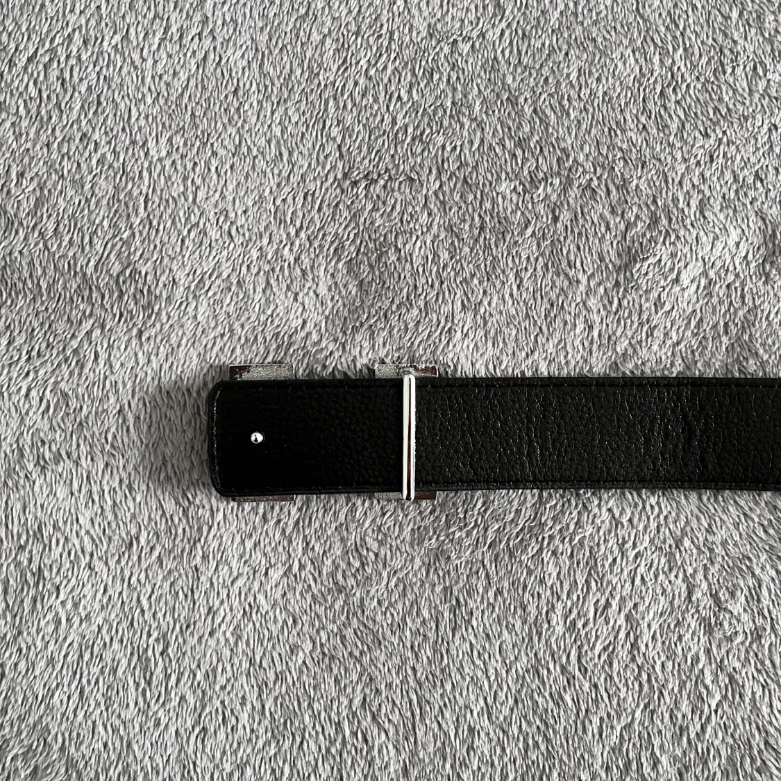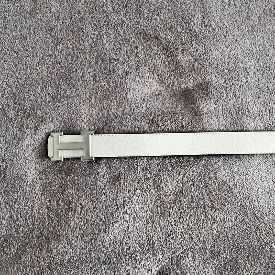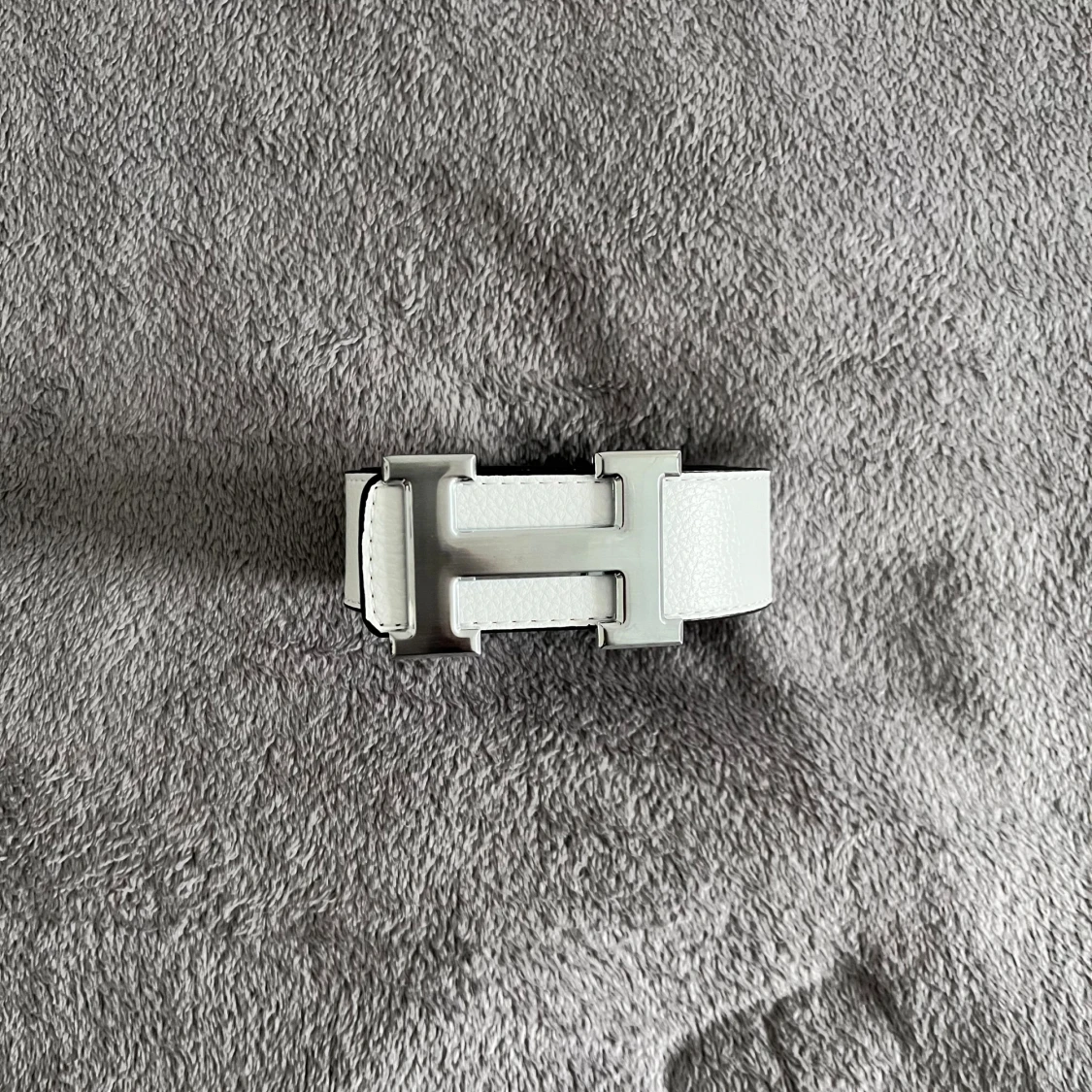 Säljer ett vändbart Hermès-bälte i svart och vitt skinn med ikoniskt H-spänne i silverfärgad metall. Bältet har stilren, rak form och präglad yta. Perfekt för dig som vill ha en lyxig accessoar med två färger i ett.