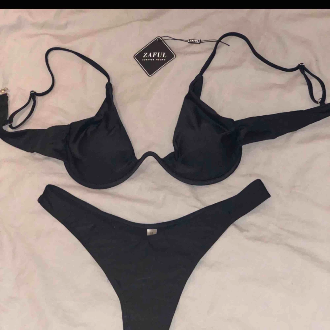 En fin baddräkt från zaful. Har tags kvar samt skyddet i underdelen. Köpte den här på plick men var tyvärr för stor i bysten på mig. Passar nån med något större byst. (Bilden är tagen av förra säljaren) Frakt: 10kr💗