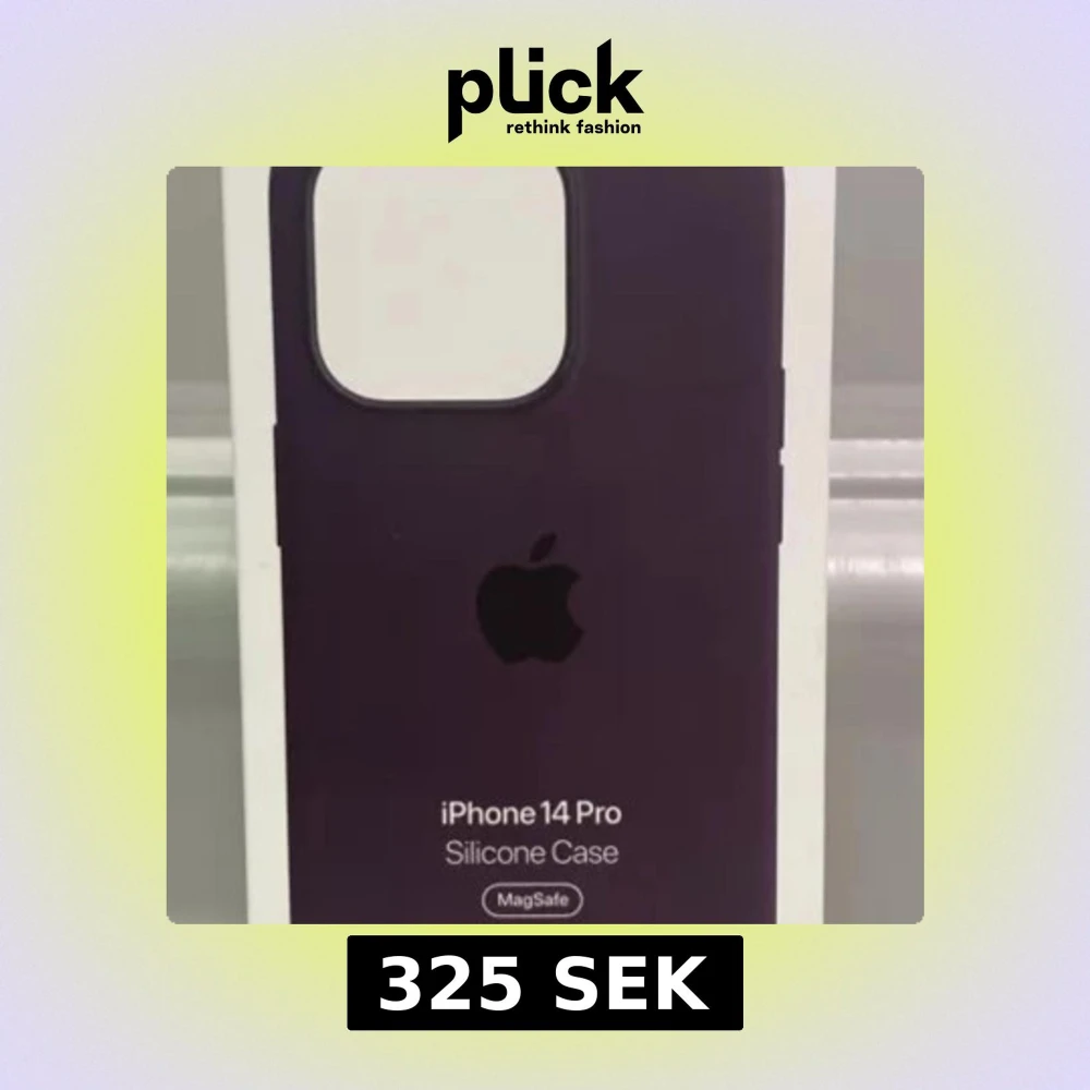 Säljer ett stilrent lila silikonfodral till iPhone 14 Pro från Apple. Fodralet har MagSafe-stöd och en clean look med Apple-loggan på baksidan. Perfekt passform och mjuk känsla som skyddar mobilen utan att bli klumpig.