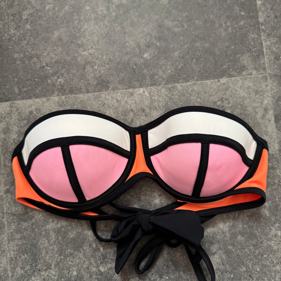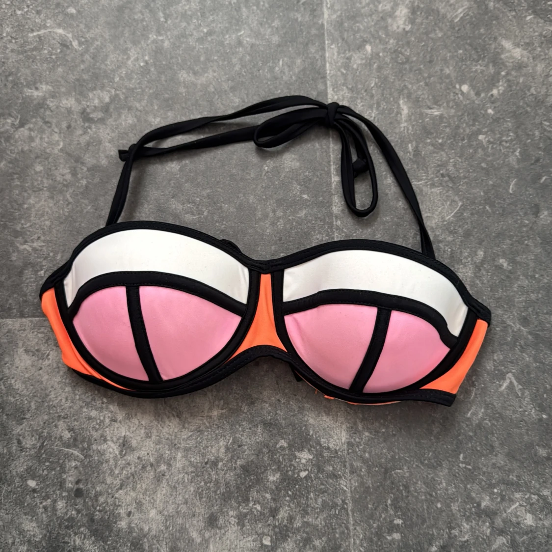 Man kan använda den på två olika sett. Man kan ta bort banden eller ha kvar. Storlek S men passar oxå Xs.Den har lite push up. Pris kan diskuteras 🩷