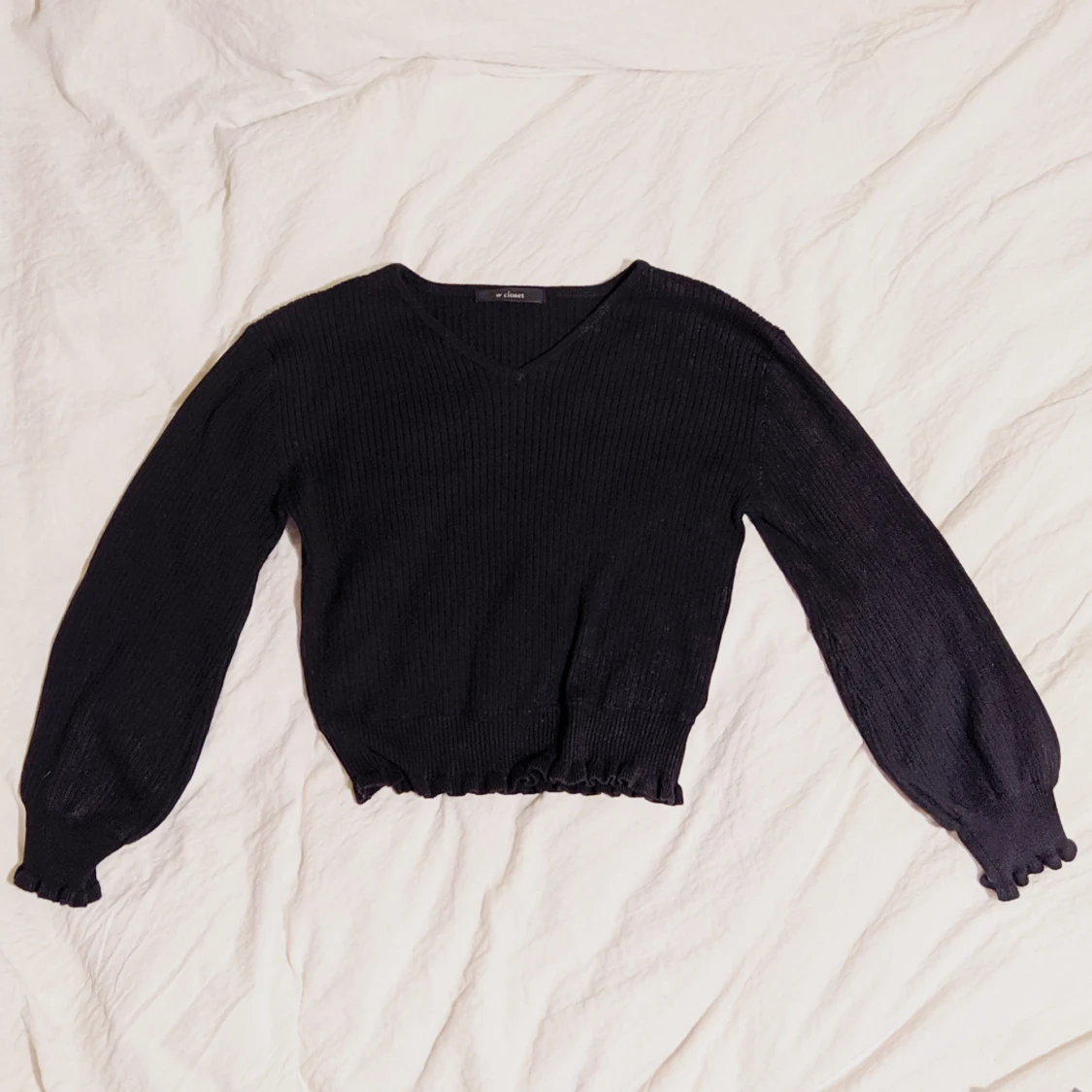Jättefin tjocktröja. Ribbad med små volanger vid armslut och midjan.